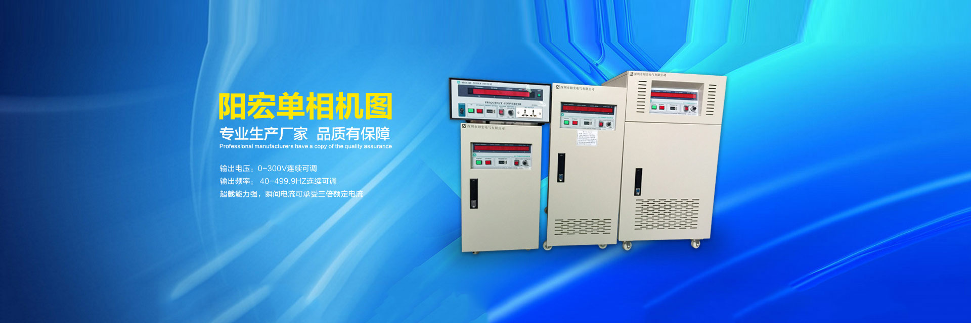 20年變頻電源制造品質(zhì)-陽宏變頻電源為您提供5KVA變頻電源,10KVA變頻電源,20KVA變頻電源,30KVA變頻電源,45KVA變頻電源,60KVA變頻電源,75KVA變頻電源,深圳單相/三相/交流變頻電源等。 模擬式變頻電源,晶體管式變頻電源,可編程式變頻電源,單相大功率變頻電源,三相大功率變頻電源是陽宏電源股份有限公司的核心產(chǎn)品。深圳市陽宏電氣有限公司隸屬臺(tái)灣陽宏電源股份有限公司,是一家變頻電源開發(fā)、研制、生產(chǎn)、銷售和服務(wù)的高新技術(shù)企業(yè)。其大陸工廠:深圳市陽宏電氣有限公司,是臺(tái)灣陽宏電源股份有限公司在中國(guó)大陸一家分公司,地址:深圳市寶安區(qū)觀瀾街道觀瀾高新科技園區(qū)。 臺(tái)灣陽宏電源股份有限公司創(chuàng)建于1995年,目前除了臺(tái)北公司以外,在中國(guó)的廣東深圳設(shè)有分公司,工廠擁有許多的先進(jìn)設(shè)備。具有年產(chǎn)各種電子儀器電源設(shè)備20000臺(tái)以上,工廠有嚴(yán)格的生產(chǎn)能力,強(qiáng)大的開發(fā)技術(shù)的管理制度,可以接受新高技術(shù)產(chǎn)品的開發(fā)與研制。
